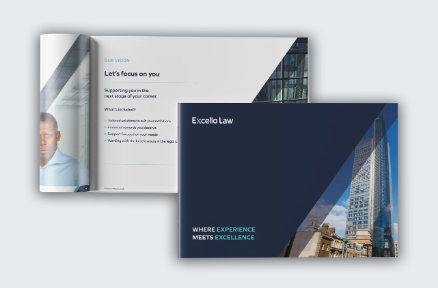 Most lawyers who join us either have a strong following or the confidence and network to build one. When you become a consultant lawyer at Excello Law, you’ll meet with our Marketing Director and Director of Community, who will help you promote yourself both within the firm and externally to build your profile.